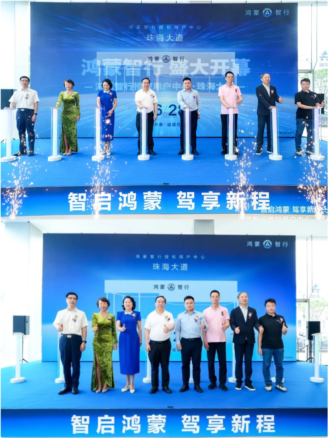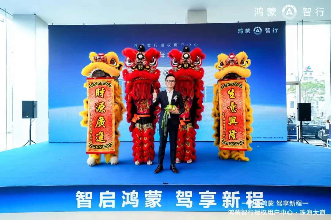 在全体嘉宾的见证下,鸿蒙智行、南菱汽车、鑫安集团及相关领导共同按下象征正式启动的能量柱,标志着鸿蒙智行授权用户中心·珠海大道店正式投入运营,为珠海及珠江口西岸地区消费者提供一站式智能出行解决方案。