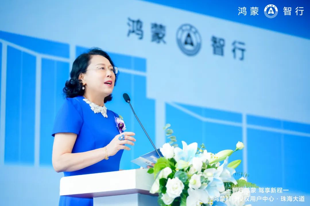 广东省流通行业协会会长 严斐代表协会向鸿蒙智行及南菱汽车致以热烈祝贺。她指出,协会始终秉持“为会员、行业和政府服务”的宗旨,积极推动政策落地与产业协同发展,在以旧换新、出口平台搭建等方面取得积极成效。南菱汽车深耕大湾区多年,为行业树立了标杆。她期待未来继续与鸿蒙智行、南菱汽车等优秀企业携手,共筑开放、创新、共赢的湾区汽车生态。